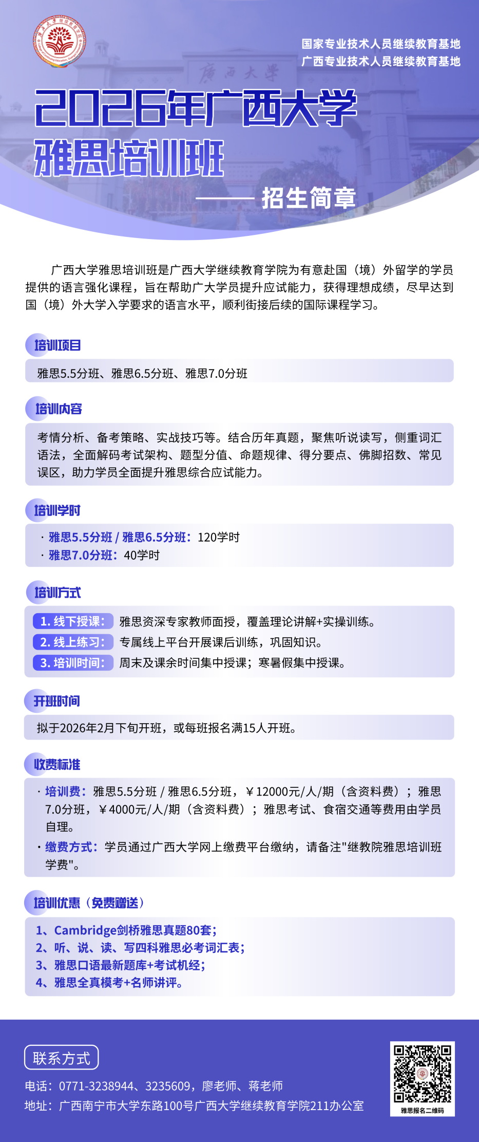此次雅思培训班是为有意赴国(境)外留学的学员提供的语言强化课程,旨在帮助广大学员提升应试能力,获得理想成绩,尽早达到国(境)外大学入学要求的语言水平,顺利衔接后续课程学习。